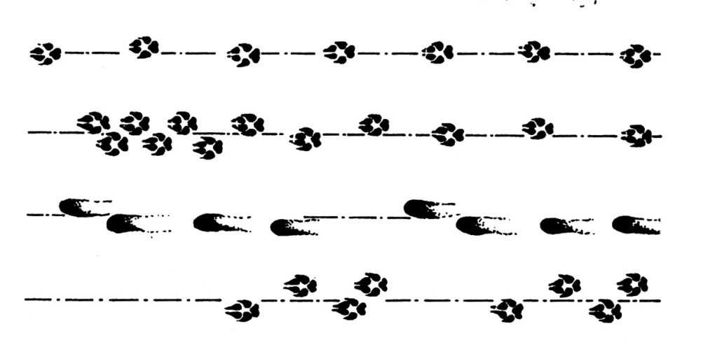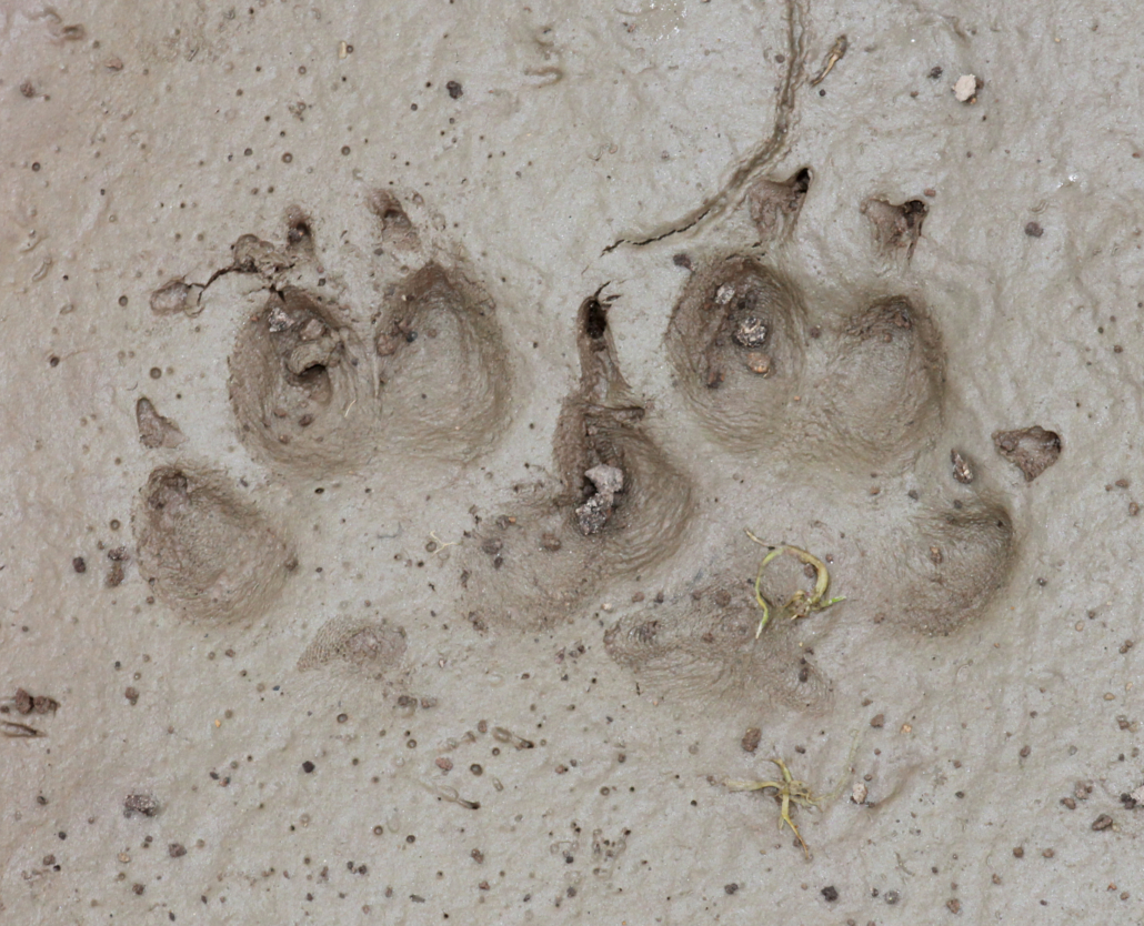 Beim Trittsiegel erkennt man die Abdrücke der Ballen und Nägel. Hunde hinterlassen ein kreisförmiges Trittsiegel (1). Füchse ein mehr ovales Trittsiegel (2).