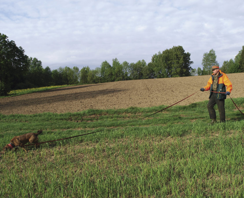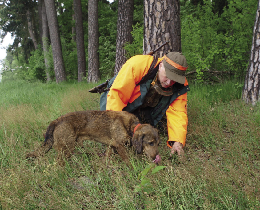 Erleichtert wird die Nachsuche durch feuchte Witterung und Schneelage. Leichter Regen verwäscht zwar den Schweiß, erschwert aber für den erfahrenen Jagdhund die Arbeit nicht.
