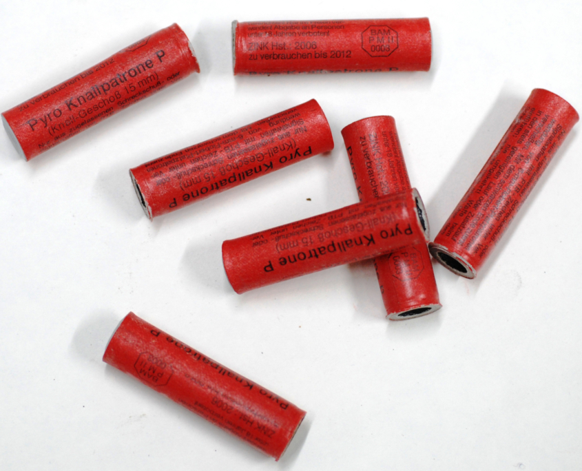Hülsen mit Treibladungen, die ein Geschoss nicht enthalten Platzpatronen, Schreckschusspatronen, Patronen für Schussapparate bei Schlachtungen