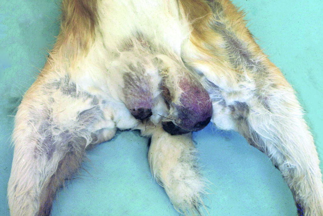 • stark vergrößerte Hoden (z. B. beim Hasen)