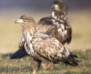 Der Seeadler ist unser größter Adler (Wappenvogel Deutschlands) und gilt in Deutschland als vom Aussterben bedroht. Zur Zeit brüten bei uns nur noch wenige Paare (gering steigende Tendenz), z. B. in Schleswig-Holstein und Nordostdeutschland. Die Hauptursachen für den starken Rückgang sind Vergiftungen durch Pestizide, Lebensraumverlust und Brutstörungen (Eierraub). Seeadler schlagen ihre Beute meist am Boden oder auf dem Wasser.