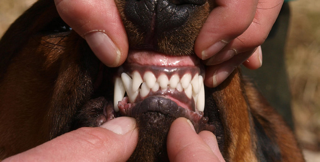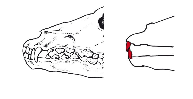 Das häufigste Gebiss ist das sogenannte Normalgebiss oder Scherengebiss. Bei geschlossenen Kiefern greifen die oberen Schneidezähne reibend und scherenartig über die unteren Schneidezähne (siehe Grafik). Dies gilt auch für die regelmäßige Stellung von Fang- und Backenzähnen.