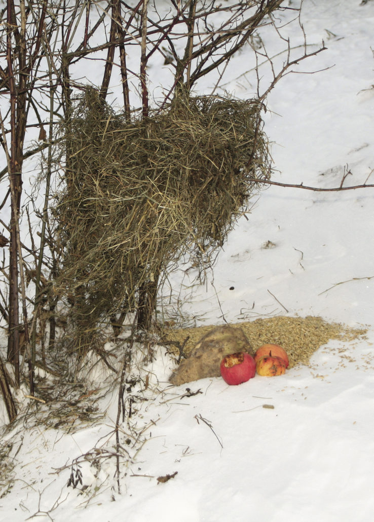 Als Saftfuttergabe eignen sich z. B. Maissilage (mit hohem Körneranteil) und Apfeltrester / Hafergemisch.