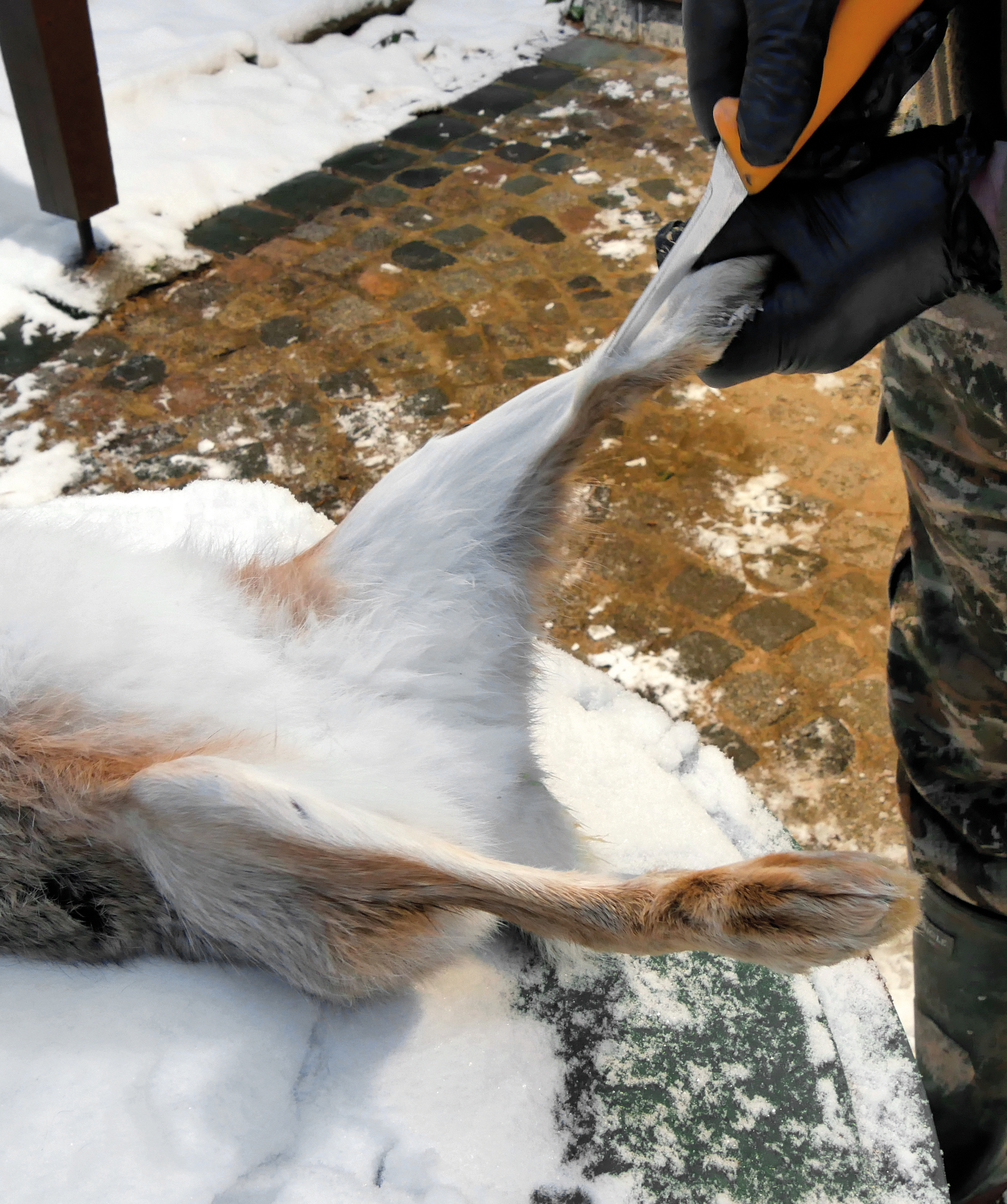 Der Balg wird über die Vorderpfoten bis zum Handwurzelgelenk