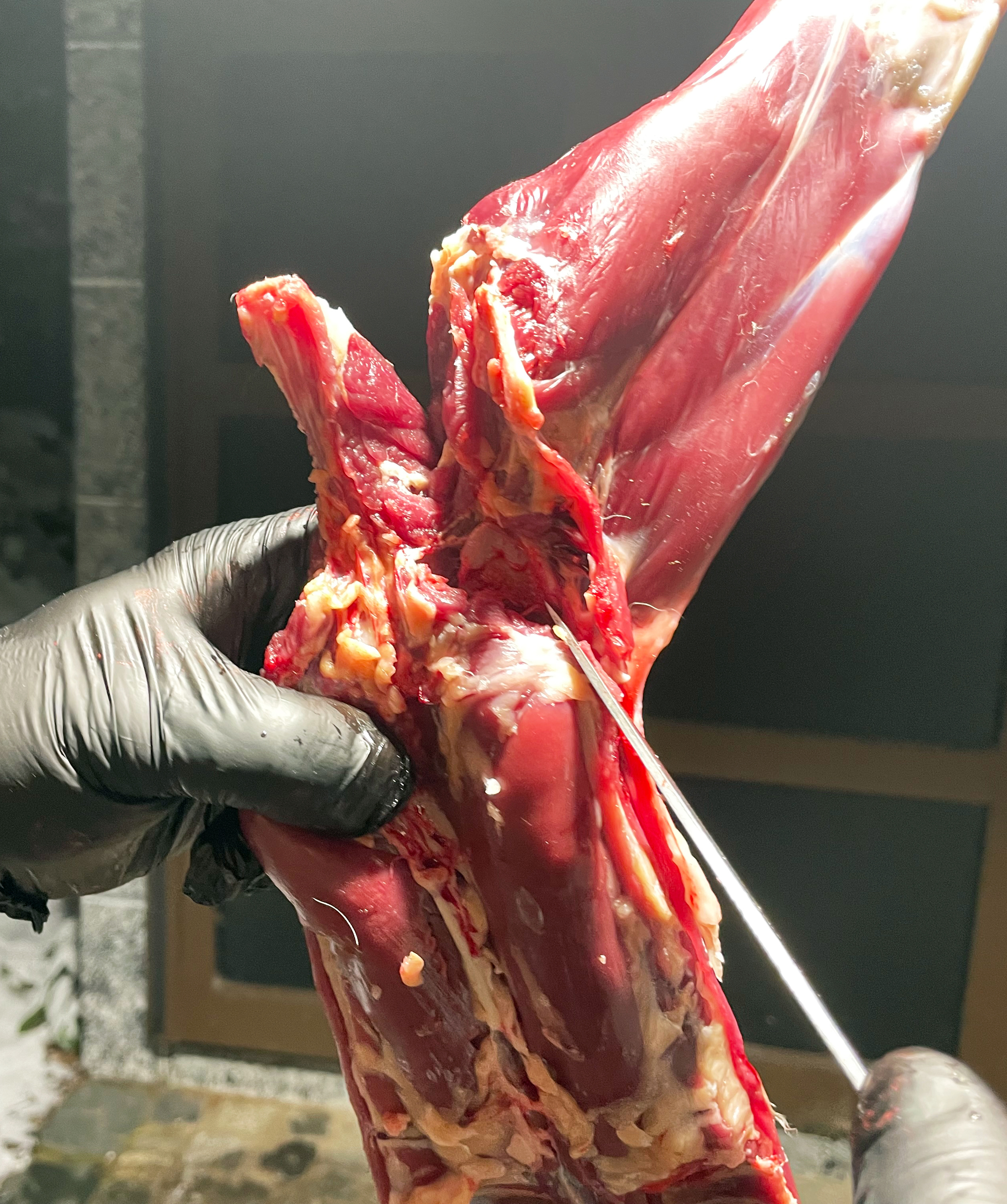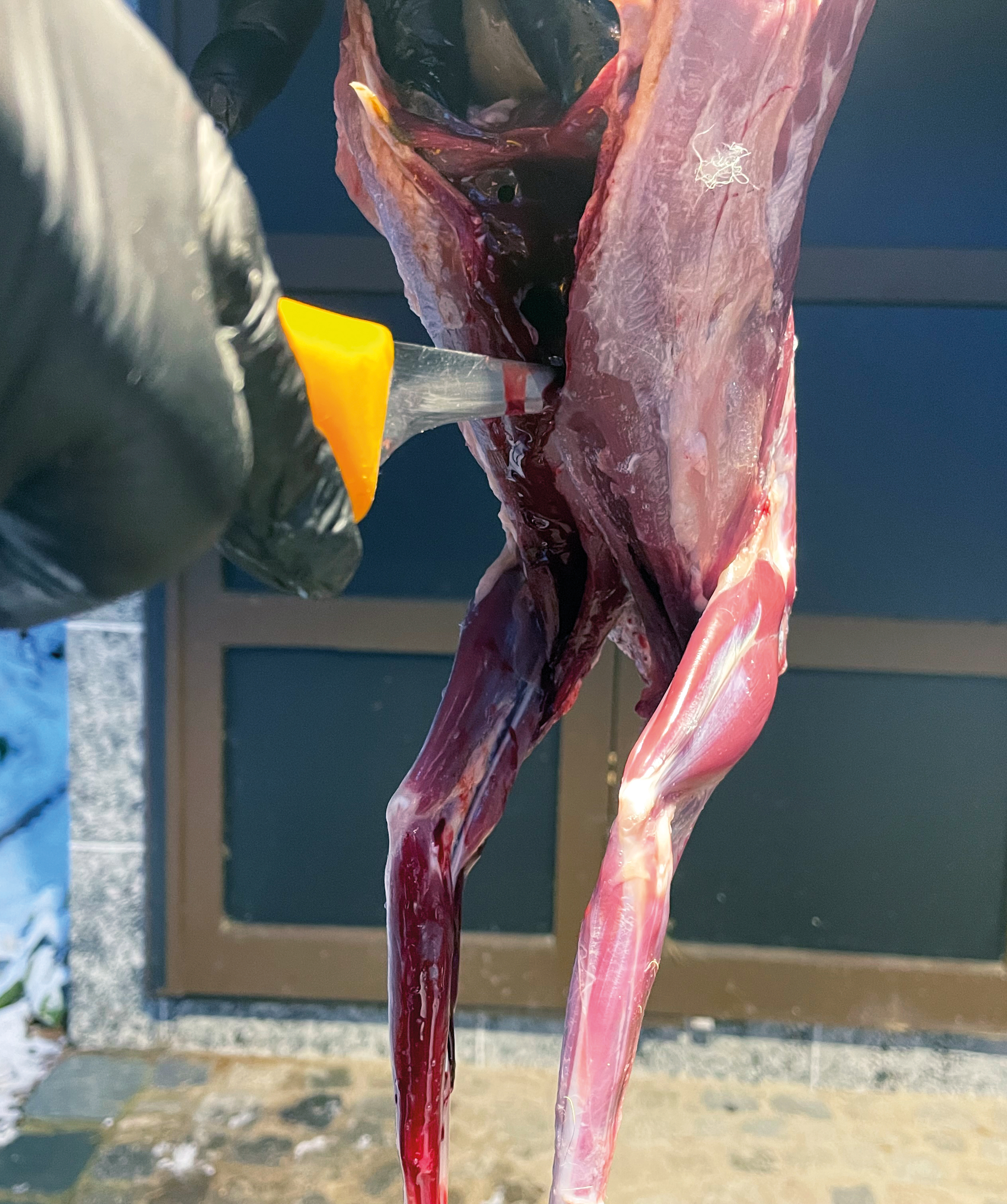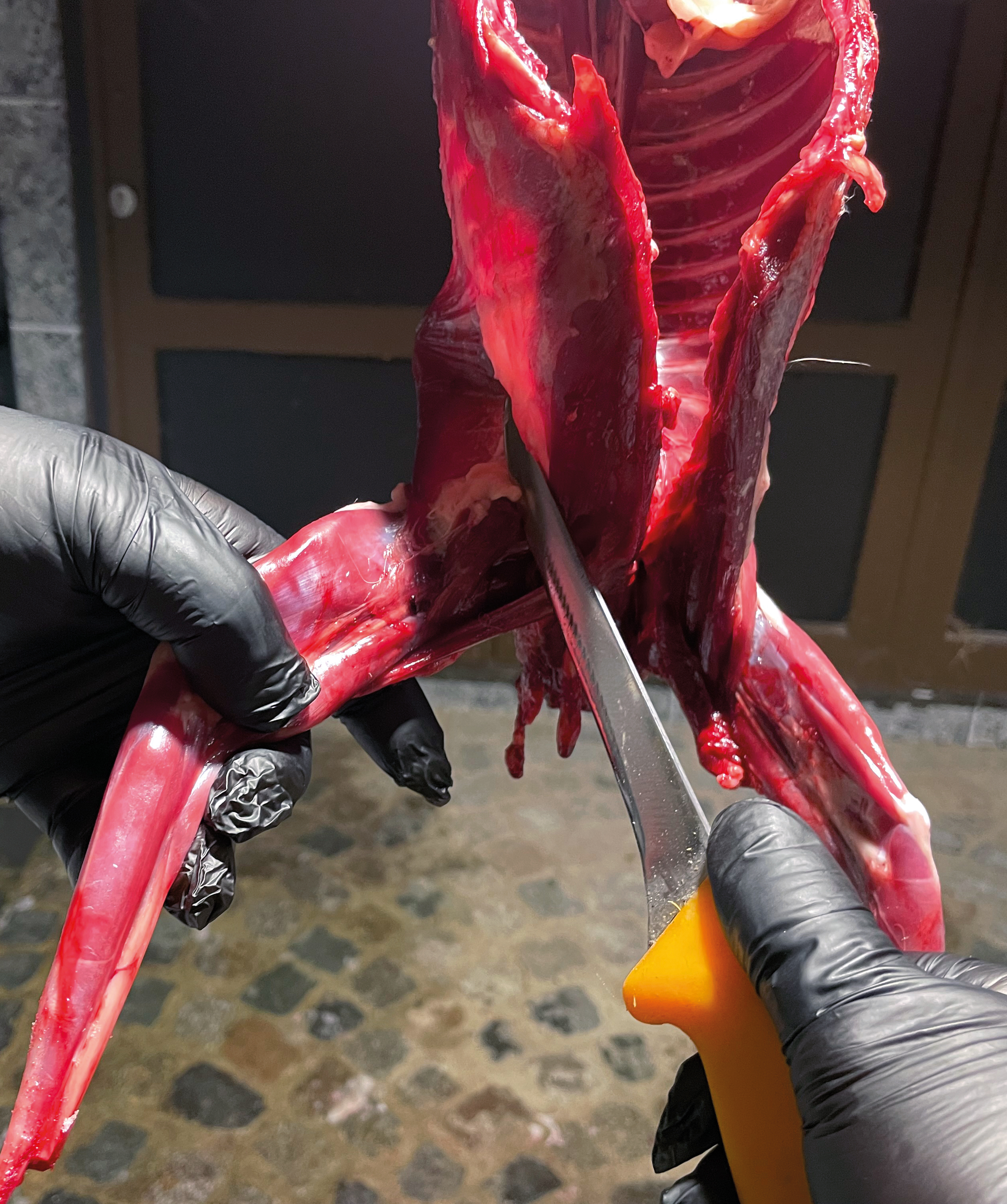 Das Zerlegen beginnt mit dem Abtrennen der Vorderläufe.