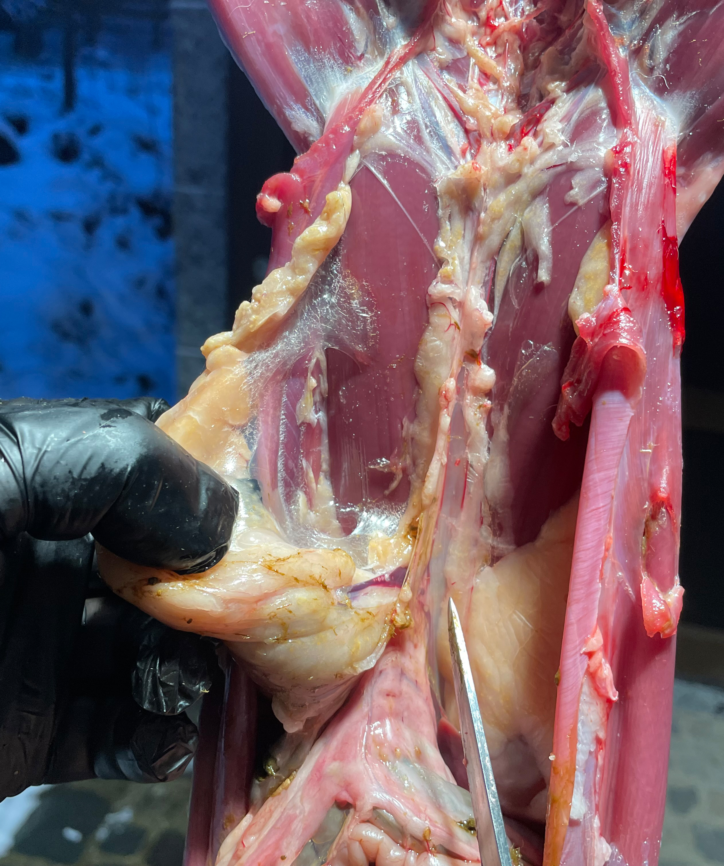 zwischen Rippen und Schulterblatt durchtrennt.