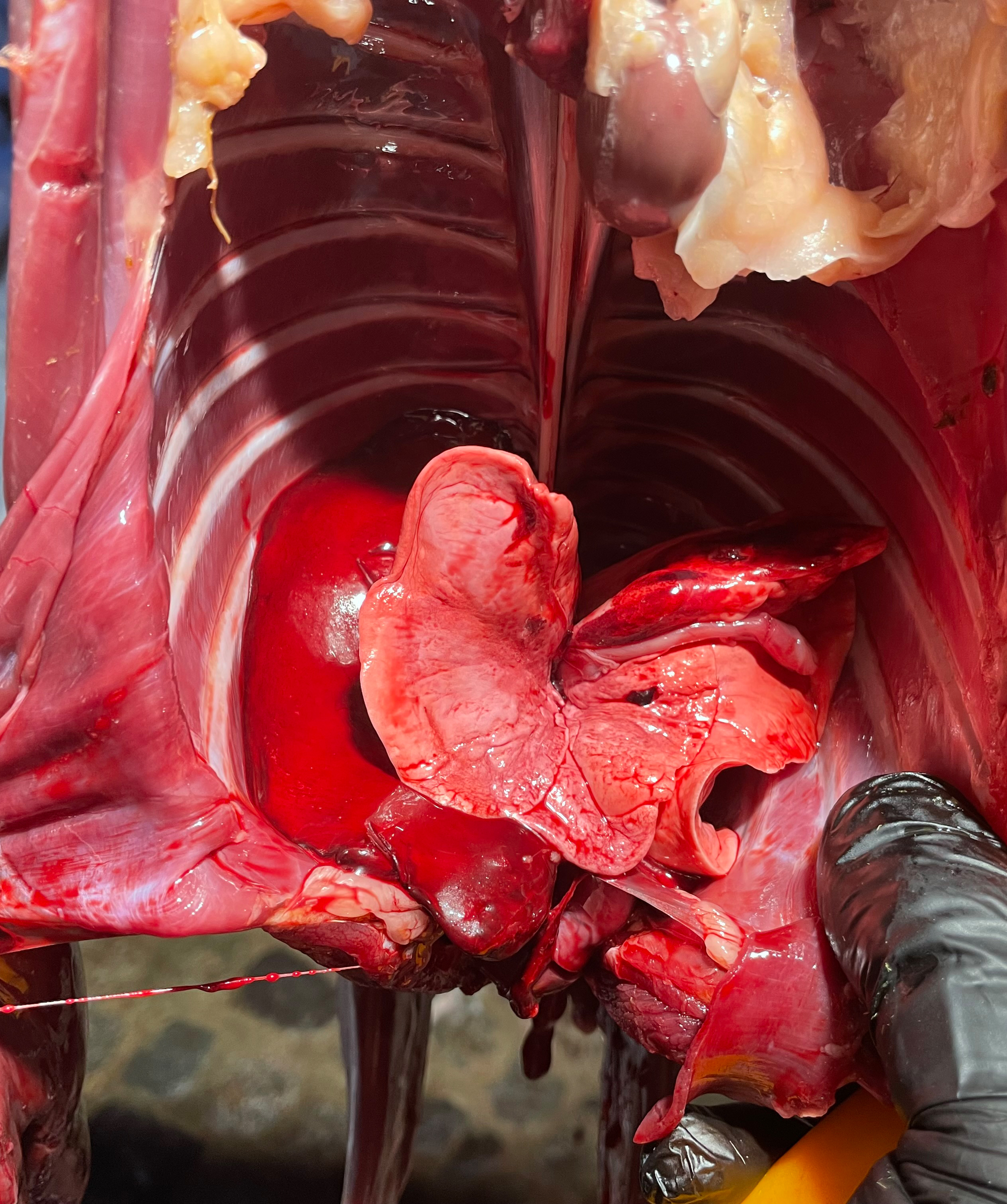Nun wird die Lunge und das Herz sichtbar.