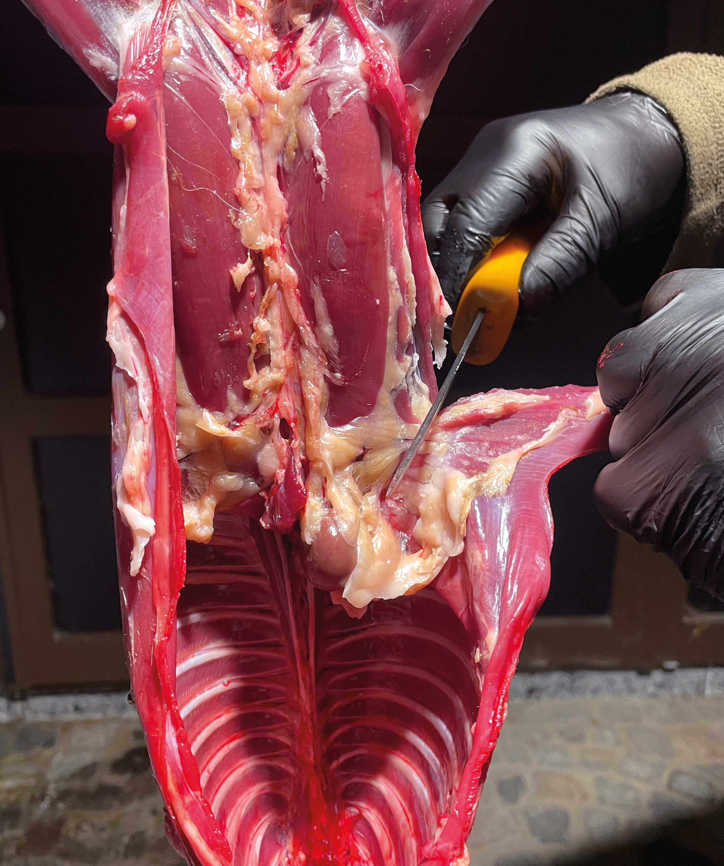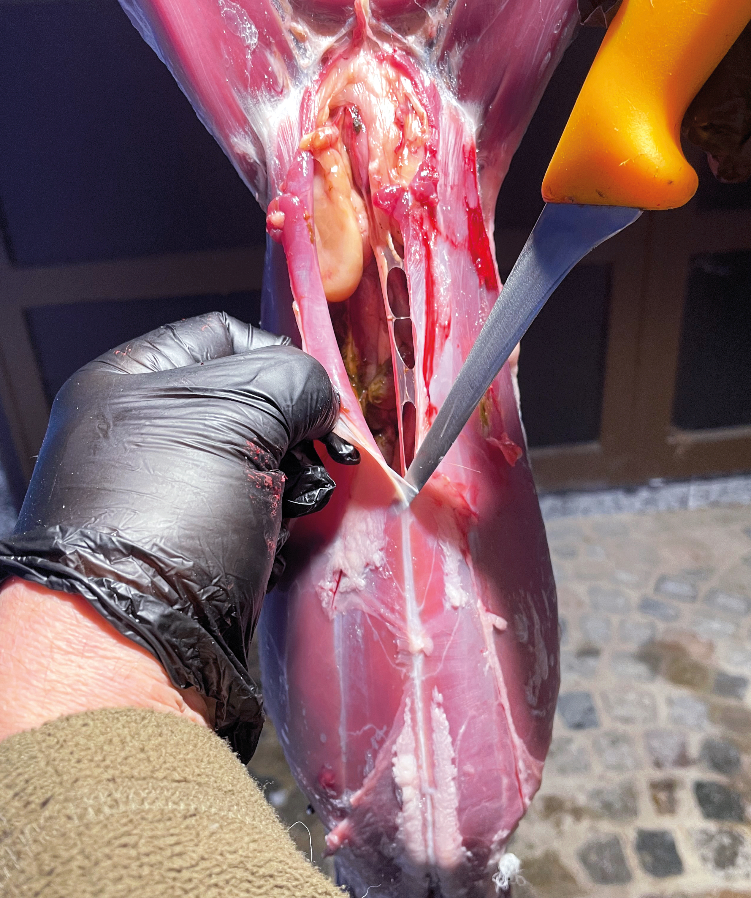 möglichst vom Wildkörper weg. Dann wird die Muskulatur