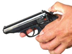 Beschrieben wird der Umgang mit der Halbautomatischen Selbstladepistole Walther, Modell PP, mit Signalstift.